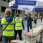 Breitscheidstrasse 58, Verpflegungspunkt 15 KM/ 35 KM: Basislager für die LSG am Sonntag. Aufbau ab 8.00 Uhr unter der Leitung unseres Getränkewartes Lothar. Einige tausend Läuferinnen und Läufer sollen am Renntag hier versorgt werden. Hinzu kommt noch die Absicherung einiger Straßenkreuzungen, damit die Athleten sicher laufen können. Auch an diesem Sonntagmorgen stehen unzählige Mitglieder der LSG zur Verfügung, um für einen reibungslosen Ablauf der Veranstaltung zu sorgen. Dabei werden wir von Helferinnen und Helfern anderer Vereine wie der TG Wehlheiden mit unterstützt. Wasserbecher füllen und anreichen, dazu Obst vorbereiten sowie die Sportler motivieren. Das werden die Hauptaufgaben sein. Um 9.30 Uhr zum Start steht alles bereit und ab 10.15 Uhr passieren die ersten Teilnehmenden den Verpflegungspunkt. Gegen 14.30 Uhr kommen die letzten Läufer bei uns vorbei und die Polizei gibt die Straße für die Autofahrer wieder frei. Damit ist die Mission für die LSG beendet. Um 15.15 Uhr ist alles Material in den Fahrzeugen verladen und ein langer Tag geht zu Ende.