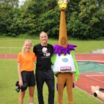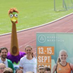 Und so waren am 18.5. vormittags mehr als 40 Kinder auf der Buchenau. Begrüßt wurden sie von Michael Aufenanger, dem Leiter des Kassel Marathon, von Winnie, dem Maskottchen, und vor allem auch von Nina Voelckel. Nina hat ihre inzwischen sehr erfolgreiche Laufkarriere selbst beim Minimarathon und Läufen beim Nordhessencup begonnen – und heute ist sie überall in der Stadt auf den Plakaten des Kassel Marathon zu sehen. Im letzten Jahr war sie erfolgreich bei der Berglauf-WM sowie den deutschen Meisterschaften im Auestadion und in diesem Jahr hat sie bereits die Quali-Norm für die EM geschafft.