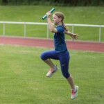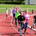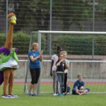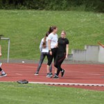 Nach der Begrüßung ging es los mit den Laufspielen auf der Bahn. Nach zwei Einlaufrunden, bei denen einige schon die Erfahrung machen konnten, dass man vielleicht doch nicht zu schnell starten sollte, gab es ein schönes Programm: Lauf-ABC, Koordinationsübungen mit kleinen Hürden und Schaumstoffblöcken und schließlich noch Staffelläufe.