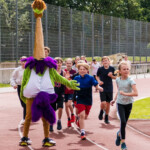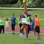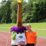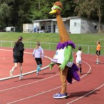 Bei den Laufspielen wurden die Kinder begleitet und unterstützt von Katja Seppi-Krey, unserer Marathon-Stützpunkt-Leiterin, von Katja Bräutigam, die in diesem wie schon im letzten Jahr beim Mini-Marathon-Training dabei sein wird, natürlich auch von Geraldine und Tobias, aber auch Nina. Selbst Winnie musste ran: Abklatschen, anfeuern, aber auch – im Rahmen seiner Möglichkeiten – an den Staffelläufen hat er sich beteiligt.