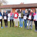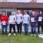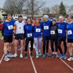 Mit zehn gemeldeten Starterinnen und Startern – acht, die schließlich laufen konnten – stellten wir die größte Gruppe bei den Meisterschaften. Und nicht nur das: Magdalena, Iris und Nora belegten den 2. Platz bei der Frauenmannschaftswertung (heißt wirklich so); Frank, Frank und Klaus landeten bei der M60-Manschaftwertung auf dem 3. Platz und kamen so auch aufs Podest. (Darauf, wie viele Mannschaften es bei der M60-Wertung überhaupt gab, können wir an dieser Stelle leider nicht näher eingehen.)